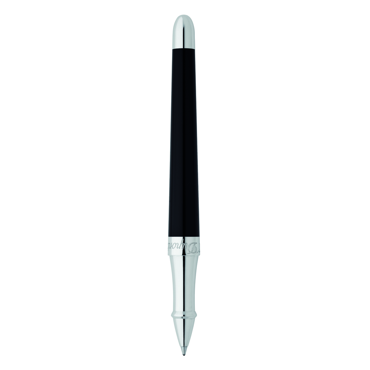 Rollerball à cartouches. Une ligne d'écriture totalement dédiée aux femmes, une ligne résolument moderne et élégante. Le haut du capuchon, parfaitement facetté tel un diamant taillé en brillant, porte le sceau de la marque, le "D". L'encliquetage du capuchon résonne malicieusement comme l'écho au cling inimitable du briquet S.T. Dupont. Finitions Palladium.