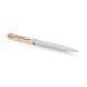 - Une silhouette élégante dotée d’un corps et d’un capuchon rehaussés d’une finition laquée blanche brillante. Le clip Waterman emblématique à double branche et un large anneau plaqué or sur le capuchon confèrent une distinction raffinée à ce magnifique instrument d’écriture.